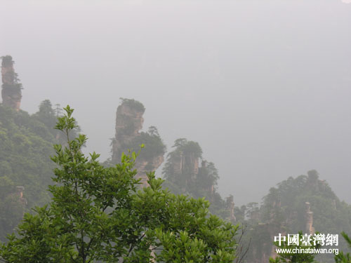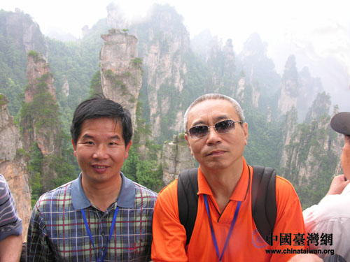 中國臺灣網7月16日張家界消息 參加“情系湖湘——兩岸文化聯誼行”活動的兩岸文化界精英,16日登上張家界市的風景名勝天子山,在云霧繚繞中體驗了“人間仙境”的美景。