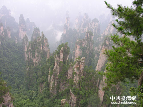16日一早,兩岸文化界精英興致勃勃地來到天子山下,乘上纜車,直達天子山頂峰。由于天上下起蒙蒙細雨,山上云霧繚繞,奇峰異景不時從云霧中顯現,引起人們的陣陣驚呼。