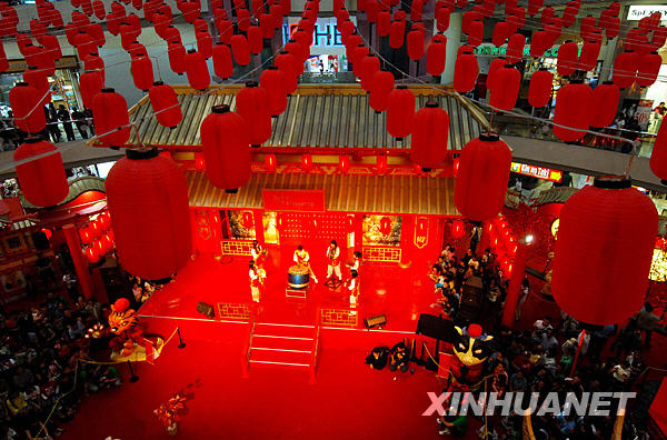 2月13日,一些演員在印度尼西亞首都雅加達的君部達購物商場表演鑼鼓。當天,雅加達的各大商場紛紛組織了各種各樣的具有中國傳統文化的慶祝活動,舞蹈、武術、舞獅等各種表演讓中外觀眾大飽眼福,也讓中外觀眾領略了中國傳統文化。新華社記者岳月偉攝