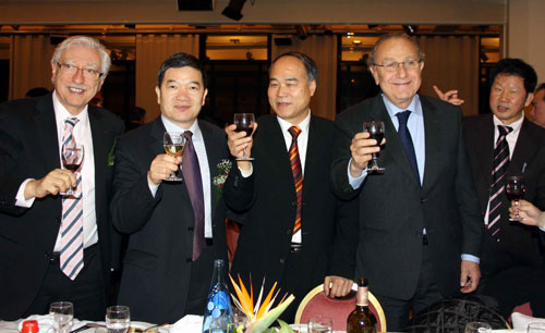 任啟亮(右1)、劉海星(右3)和陳勝武(右2)等出席了法國華僑華人會成立40周年慶典。