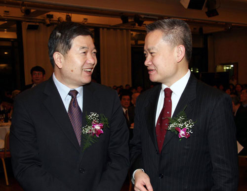 任啟亮(左)和劉海星(右)在歡迎招待會上