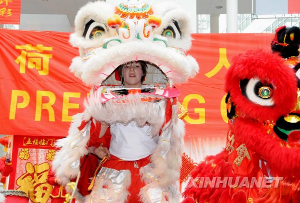 市政廳正對面的唐人街里,由華僑華人子女以及當地荷蘭人組成的“功夫”隊表演著龍獅舞沿紅地毯行至不久前才揭幕的中華牌樓處,舉行傳統的舞龍采青活動。寬不過15米的街道兩側,上萬名荷蘭民眾摩肩接踵,感受中國佳節的熱烈氣氛。