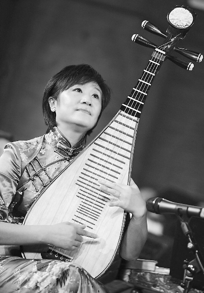 中國琵琶演奏家吳玉霞進行中國民樂表演。