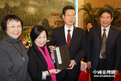 中國(guó)臺(tái)灣網(wǎng)11月20日天津消息 中共中央政治局委員、市委書記張高麗11月20日中午在天津迎賓館會(huì)見了來津出席“海峽兩岸京劇藝術(shù)論壇”的臺(tái)灣中華婦聯(lián)總會(huì)主任委員辜嚴(yán)倬云女士一行,就加強(qiáng)津臺(tái)兩地交流合作,促進(jìn)京劇事業(yè)發(fā)展進(jìn)行深入交談。