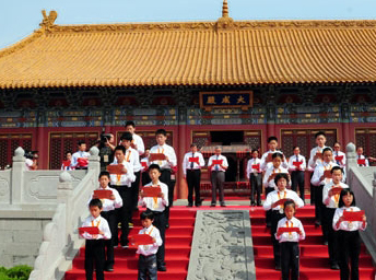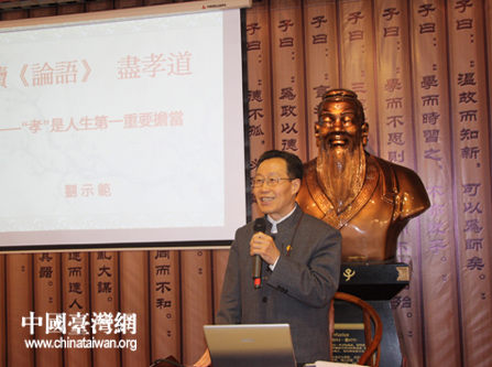 | “學(xué)而時(shí)習(xí)之,不亦說(shuō)乎,有朋自遠(yuǎn)方來(lái),不亦樂(lè)乎……”清澈洪亮的聲音今日上午回蕩在濟(jì)南、臺(tái)中的兩地上空——兩地兩萬(wàn)余名中小學(xué)生在第二屆海峽兩岸經(jīng)典文化推廣會(huì)演的開(kāi)幕式上,通過(guò)網(wǎng)絡(luò)視頻連線的方式,同時(shí)齊誦中華經(jīng)典名句,共同弘揚(yáng)傳統(tǒng)文化。 |