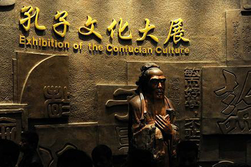 孔子文化大展11月16日開始在山東省博物館新館舉行,展覽以精美的文物、圖片、復原景觀、模型、多媒體等多種表現形式展示和解讀孔子文化,包括孔子生平、孔子思想及影響、萬世師表、孔子思想對世界的影響四部分。(新華社記者徐速繪/攝)