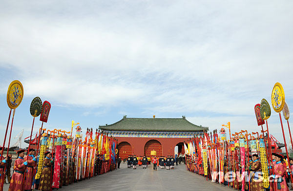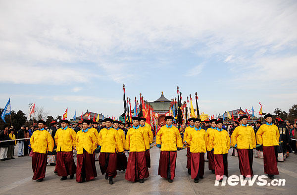 1月20日,在北京天壇祈年殿前進(jìn)行彩排的祭天儀式現(xiàn)場。新華網(wǎng) 文濤攝 |