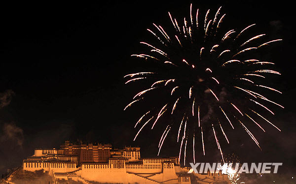 1月26日凌晨,拉薩城內火樹銀花迎新春。新華社記者普布扎西攝