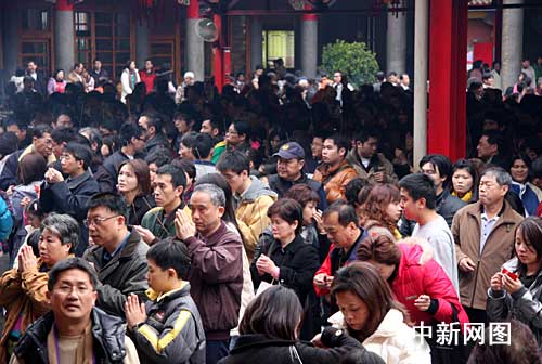 到寺廟去虔誠拜拜,祈求來年平安是成千上萬臺胞春節必做的功課。 中新網記者 陳立宇 攝