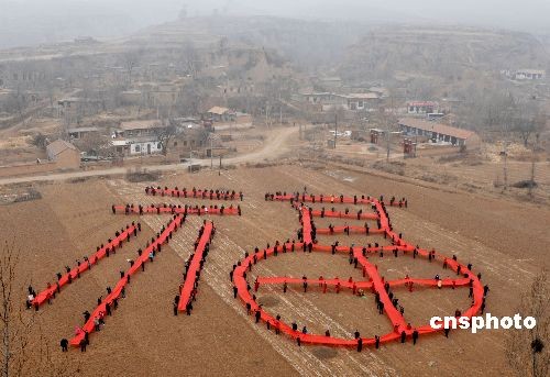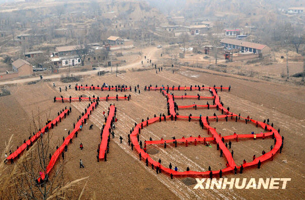 2月4日,太原市攝影家協會的上百名攝影師來到山西陽曲縣安塘村,開展“送福到農家”活動,攝影師和安塘村村民在空地上用紅布展示出一個3600平方米的巨型“福”字,以這種獨特的方式歡慶新春,傳遞祝福,表達對新一年的美好期盼。此外,攝影師還為村民們免費拍攝全家福,并現場洗印出來相贈,受到村民的歡迎。新華社記者 燕雁 攝
