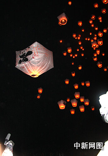 1月9日晚,由臺灣“交通部”觀光局和臺北縣政府主辦的“天燈讓兩岸亮起來”慶元宵活動在臺灣天燈之鄉平溪舉行。記者 陳立宇 攝
