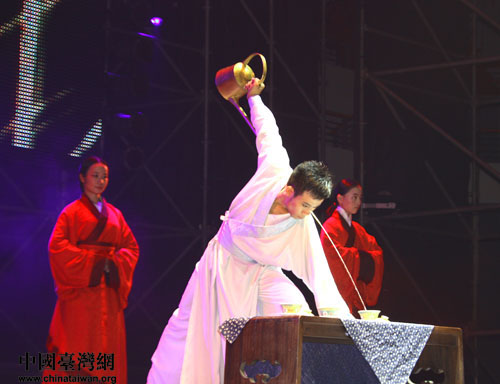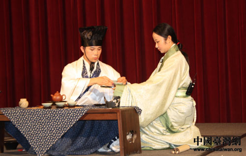 北京孔廟和國子監博物館工作人員為兩岸師生作茶道表演。(中國臺灣網 李杰 攝)
