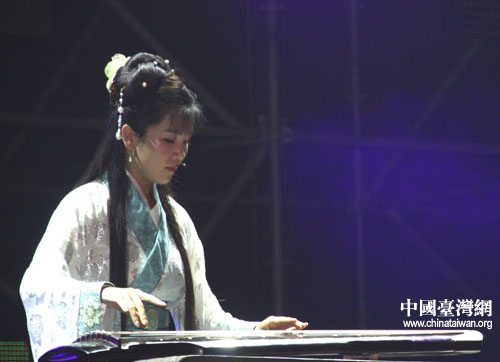 北京孔廟和國子監博物館工作人員為兩岸師生表演古琴。(中國臺灣網 李杰 攝)