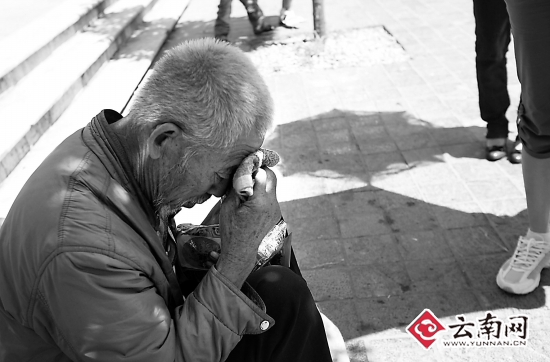 收到月餅,流浪老人很感動(dòng) 江洋 攝