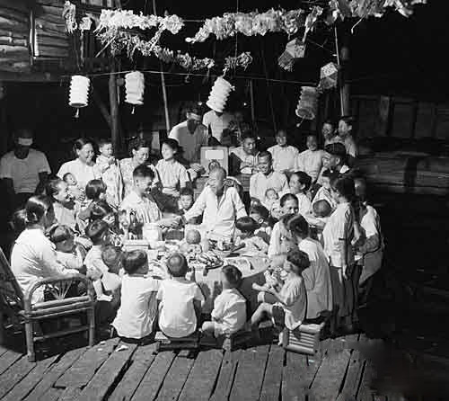 這是20世紀50年代,81歲的老漁民郭汝一家四代同堂共55人在中秋節夜大團聚。