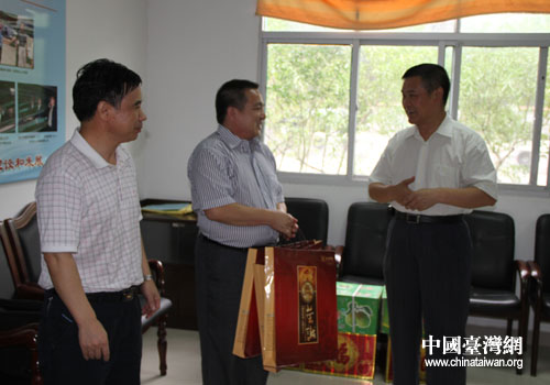 中國(guó)臺(tái)灣網(wǎng)9月25日消息 中秋前期,湖北省十堰市政協(xié)副主席王慶華一行在十堰市臺(tái)辦主任曹奎、副主任郭升平的陪同下來(lái)到臺(tái)企阿里山公司,看望慰問(wèn)在那里投資興業(yè)的臺(tái)灣客商賴昶浚父子及專職茶葉師傅三人,了解臺(tái)商們?cè)谑叩墓ぷ鳌⑸钋闆r,為他們送去了中秋月餅和節(jié)日祝福。