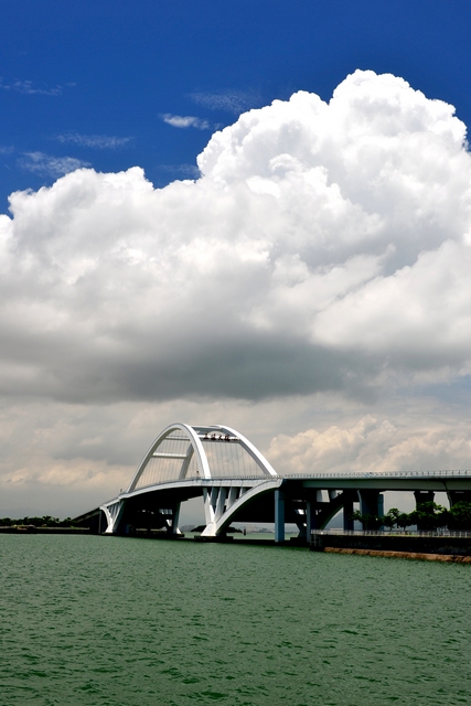 五緣灣大橋位于廈門的東側(cè),原名鐘宅灣大橋,是廈門首座采用鋼性吊竿結(jié)構(gòu)建設(shè)的橋梁.五緣灣大橋共有五座大橋組成,分別為日緣橋、月緣橋、天緣橋、地緣橋、人緣橋,這五個橋的名字分別對應(yīng)了不同的寓意,如月圓橋,寓意“海上升明月”;天圓橋,寓意“天涯共此時”;人圓橋則寓意“兩地共嬋娟”( 在此不禁感嘆,中國人的相象力真是太豐富),五個圓寄托兩岸人民盼團圓的美好意愿,而五圓恰好與“五緣”諧音,故而取名五緣橋。