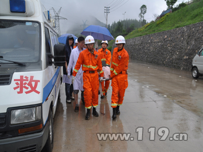 消防官兵救出被困人員送往醫(yī)院進行急救