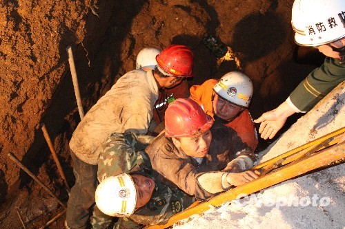 12月14日晚,貴州省六盤水市一建筑工地發生塌方事故,當時正在管道溝里作業的一名民工下半身被塌方的泥土掩埋,當地消防官兵接警后迅速趕到現場,不顧自身安危,用雙手將埋壓民工下半身周邊的泥土一一刨出來。經過1個多小時的緊張救援,被困民工終于得救,送往醫院救治。