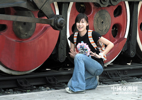 臺(tái)灣中視主持人張棋惠小姐與車輪比高 圖片來源:沈陽(yáng)市臺(tái)辦