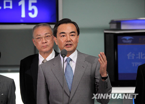 7月10日,中共中央臺辦主任王毅在機場講話。新華社記者 邢廣利攝