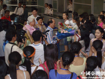 | 中國臺灣網8月6日長沙消息 昨天下午4點45分,參加“湖湘文化之旅”的140多名臺灣代表抵達湖南長沙黃花機場。這140多名代表主要是來自臺北藝術大學、東吳大學、輔仁大學、實踐大學、臺南科技大學等10多所臺灣院校的院長、教授、教師、研究生、大學生。他們將與60多名來自湖南大學、湖南師范大學、湖南理工學院的湖南學子一起牽手“湖湘文化之旅” 交流活動,為期10天。