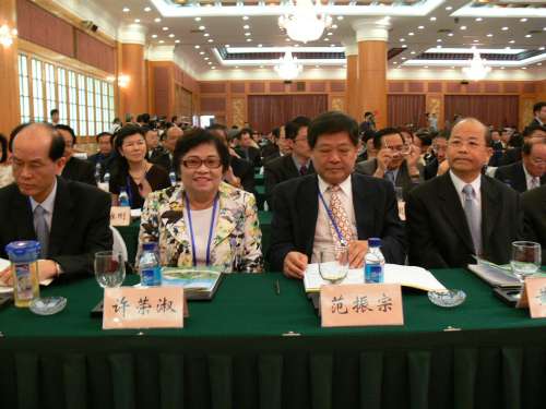 民進黨人士許榮淑(左)、范振宗(右)備受禮遇,被安排在第一排參加兩岸論壇。圖片來源:大公報