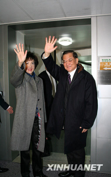 12月21日,連戰(zhàn)一行在機(jī)場(chǎng)與送行人員道別。