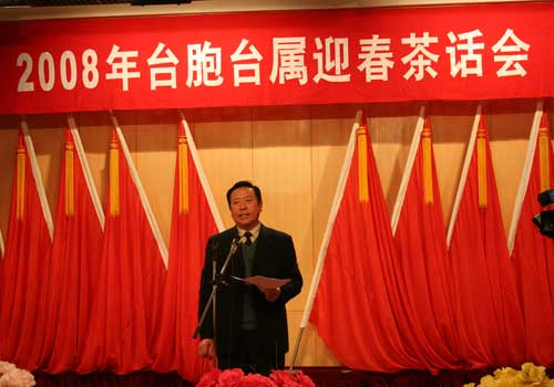 自治區黨委副秘書長、臺辦主任蘇培學在茶話會上致辭