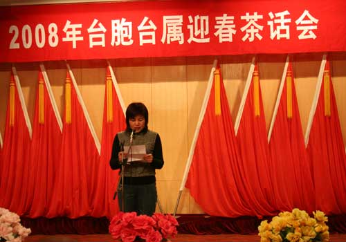 寧夏回族自治區人民政府臺灣事務辦公室、寧夏回族自治區政協港澳聯絡委員會昨天下午在銀川舉行“2008年臺胞臺屬迎春茶話會”,60多位銀川地區的臺商、臺胞、臺屬和臺資企業代表在銀川歡聚一堂共迎新春。
