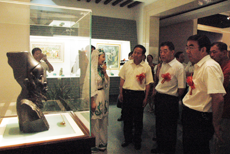 自治區(qū)主席助理田明,國際友誼博物館館長李進增出席開幕式并觀看展覽。