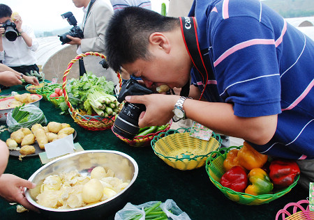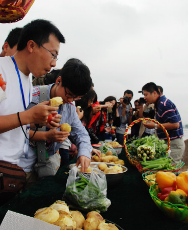下車后,大家蜂擁而至,迫不及待的品嘗美食。“這個烤馬鈴薯真好吃啊!”“這個蒸開花的更好吃,你嘗嘗!”“來來,搭配這個辣椒吃,更美味!”一時間,各大網媒的記者們成了美食家,對示范園區的蔬果贊不絕口!
