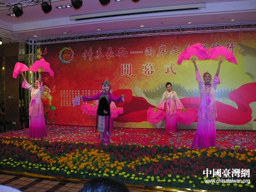 中國臺灣網7月13日西安消息 第五屆兩岸經貿文化論壇于12日剛剛閉幕,今天,“情系長安——兩岸文化聯誼行”活動正式啟動。13日晚,在古城西安市舉行了舉行了“情系長安——兩岸文化聯誼行”開幕式,來自海峽兩岸的100多位文化界人士齊聚一堂,共商兩岸交流大計,共同期待對陜西三秦大地厚重歷史文化的探尋。