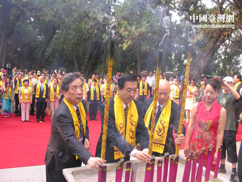 中國(guó)臺(tái)灣網(wǎng)7月19日陜西黃陵縣消息 7月19日,參加“情系長(zhǎng)安——兩岸文化聯(lián)誼行”活動(dòng)160余位兩岸文化界人士,共同在黃帝陵恭祭軒轅黃帝,并栽植紀(jì)念林。