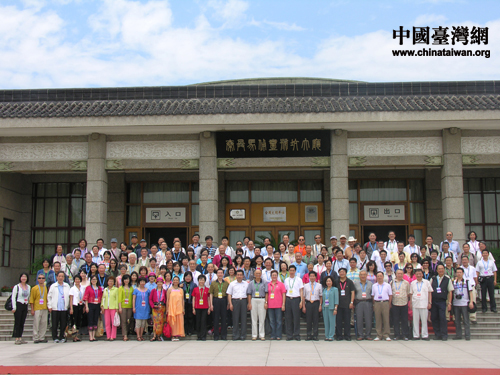 “情系長安——兩岸文化聯(lián)誼行”全體嘉賓在秦兵馬俑博物館前的“全家福” (中國臺灣網(wǎng) 蕪?fù)?攝)
