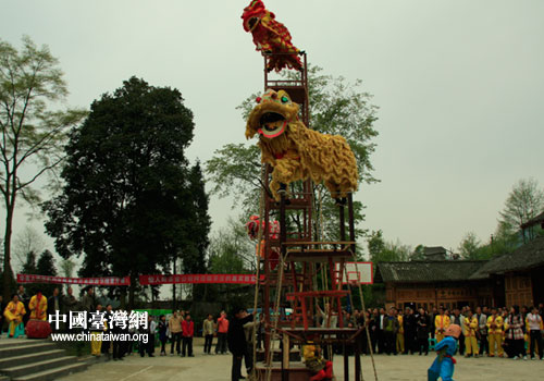 仙人嶺茶莊的高臺舞獅表演(中國臺灣網 李丹 攝)