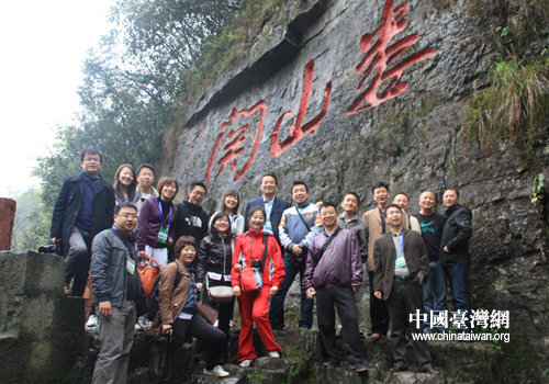網絡媒體記者在婁山關石刻前合影留念(中國臺灣網 李丹 攝)