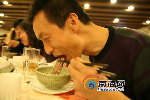 趕緊吃一口自己親手掰的饃吧!(南海網記者 史莎 攝)