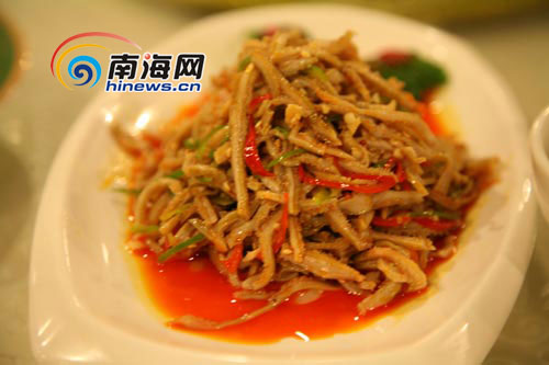 給牛羊肉泡饃配的熱菜:麻辣羊肚。(南海網記者 史莎 攝)