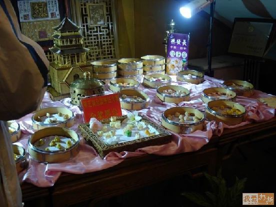 在西安老家過(guò)10.1,家里來(lái)了長(zhǎng)期住在香港的親戚。來(lái)了點(diǎn)名要吃西安的“餃子宴”,說(shuō)在海外是跟全聚德的烤鴨相當(dāng)名氣的東東。于是就去預(yù)訂了,那里一般都要預(yù)訂,而且吃餃子宴一般都是包間。俺們訂的還是最低標(biāo)準(zhǔn)的,80米/位。據(jù)說(shuō)是有16道不同的餃子,8道涼菜,3道小吃,1道湯,普通餃子敞開(kāi)吃,管夠。德發(fā)長(zhǎng),在鐘鼓樓廣場(chǎng)邊上,恢常恢常醒目,俺們是晚上去的,只照了夜景。那天還下著雨,nnd,吃個(gè)東東真不容易啊。 |