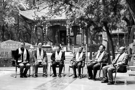 (左起)梁冬、徐文兵、朱大可、肖云儒、張寶通和王東岳參加“問道軒轅”活動。 記者 張靜 攝