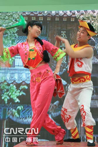 “民歌之鄉”安塞展示區里,陜北歌舞正在上演