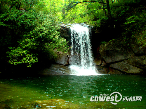 州東百里,龍駒寨東河,即涌峪河,兩峰對峙,一水直瀉為瀑布,下為龍潭,潭中有巨石連岸,危步臨之,真奇觀也。