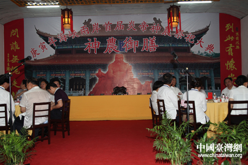 中國(guó)臺(tái)灣網(wǎng)8月12日株洲消息 12日上午,庚寅年海峽兩岸首屆炎帝神農(nóng)祭祀大典在湖南省炎陵縣炎帝陵隆重舉行!吧褶r(nóng)御膳”亮相本次神農(nóng)文化祭,海峽兩岸800余嘉賓共享神農(nóng)飲食文化。