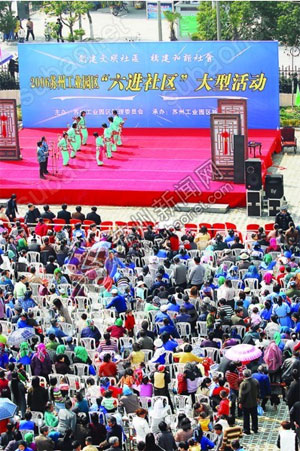 城市的“精”、“氣”、“神”到最后一定會在人的身上加以體現(xiàn)。各種文化交融互通,“老”、“新”、“洋”蘇州和諧共處,就是其中一大表現(xiàn)。 3000多家外資企業(yè)、2萬多名高級技術(shù)人才、1500多名海外歸國人員、1萬多名境外人士匯聚一起,安居樂業(yè),園區(qū)充分彰顯出現(xiàn)代新城國際化、多元化的特色。近幾年來,園區(qū)堅持舉辦大型元宵迎春燈節(jié)、中秋晚會、廣場文化節(jié)、大閘蟹文化節(jié)、圣誕迎新晚會,并連續(xù)舉辦了六屆中外企業(yè)體育交流賽和全區(qū)運動會;園區(qū)成立蘇州市第一家有外籍人士參加的中外企業(yè)合唱團,成立境外女士聯(lián)誼會,開展了一系列豐富多彩的文化交流活動;園區(qū)湖西社區(qū)推廣“鄰里互助行動”,吸引來超過7000戶居民簽訂“鄰里互助公約”,5000多戶填寫“鄰里互助卡”,還有500多位境外居民簽名加入,營造出“關(guān)門是小家,開門是大家”的社區(qū)氛圍,被評為蘇州市第15屆社會主義精神文明建設(shè)十大新事;園區(qū)深入推進數(shù)字電影“四進工程”,每年在全區(qū)放映700多場露天電影,勝浦鎮(zhèn)金苑社區(qū)是全國第一個數(shù)字電影文化社區(qū)。在創(chuàng)建全國文明城市期間,園區(qū)又以獨具特色的城市環(huán)境建設(shè)、豐富多彩的市民文化生活、創(chuàng)新創(chuàng)優(yōu)的文明創(chuàng)建探索受到了各界的關(guān)注和好評,目前,創(chuàng)建文明示范城區(qū)又納入了園區(qū)人的視野中。