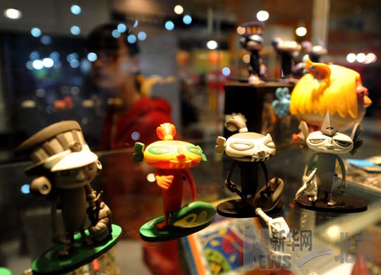 11月18日,觀眾在臺北創(chuàng)意精品館里欣賞可愛的小玩偶。