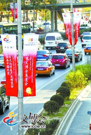 在文博會主題展館及各分會場周邊道路上懸掛的彩旗迎風飄揚。本報記者 孫戉攝