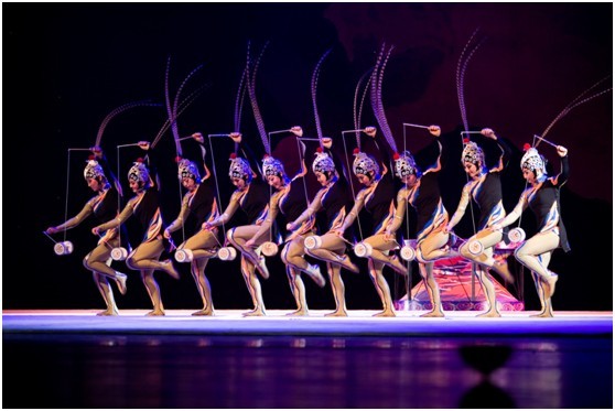精雕細琢的京味風情,匠心獨運的角色造型。頭戴錦翎的武花旦的舞臺人物形象造型,恰恰點出了這個源于民間游戲節目文活武演的特點,一組組高難而優美的創新技巧,成為節目中一個又一個突出的亮點,英武嬌媚盡在舉手投足之間。