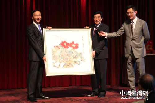 郭金龍向臺灣新北市長朱立倫贈送紀念品(中國臺灣網 趙輝 攝)