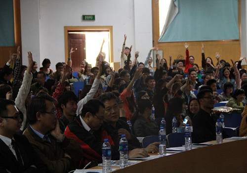 4月11日,第22屆時報金犢獎巡講會陜西站在盎然春色的西安交通大學圓滿舉行,會場內高朋滿座,來自西安交通大學、西北大學、西安工程大學、西安理工大學、西安歐亞學院、西安外事學院、寶雞文理學院、咸陽師范學院、長安大學、西安翻譯學院等陜西省十多所大學400多名學生融入到金犢創意之風潮。策略單企業代表旺旺集團、乾唐軒、三弦男裝在現場對企業文化和策略要求進行了精彩解讀,現場互動氛圍熱烈。IM2.0互動營銷公司華北區總經理、執行創意總監袁學智先生為同學們進行了以“移動互聯網,創意新戰場”為主題的創意演講,精彩案例的分析為師生們提供了創意思考的新理念、新角度、新方法,為同學們參賽理清了思路。金犢獎巡講會的創意浪潮為秀美的古都西安增添了創意之色。